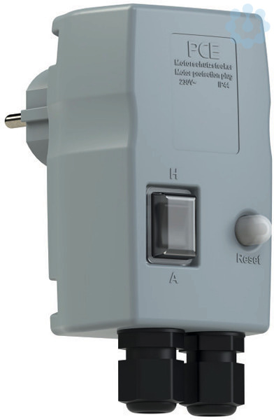 Motorschutzstecker 4A 230V IP44 (I-0); Gehäusematerial: PC/ABS; Nennstrom: 16A; Polzahl: 3 (2P+PE); Nennspannung/Frequenz: 230V~ / 50+60Hz; Kontakte: Messing vernickelt; Anschlusstechnik: Schraubklemmen; Schalter: AUS-EIN (0-I); 2x Kabelverschraubung M16, für Verwendung mit Schwimmerschalter; IK-Norm lt. EN50102: IK09; Schutzart: IP44
