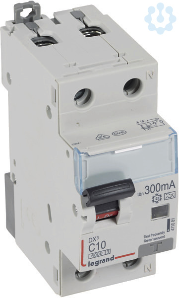Legrand FI/LS-Schalter DX3, 1-polig mit mitschaltendem Neutralleiter, Typ A, für Wechsel- und pulsierende Gleichfehlerströme nach EN 61009-1, VDE 0664-20, unverzögert, Bemessungsstrom In 10 A, Bemessungsfehlerstrom Idn 300 mA.C-Charakteristik, Bemessungsspannung Un 230 VAC , Bemessungsfrequenz 50 Hz, Bemessungsschaltvermögen Icn 6 kA, Stoßstromfest bis 250 A, Energiebegrenzungsklasse 3, Auslöseanzeige: gelb=Fehlerstrom-oder Prüftastenauslösung, farblos= Kurzschluss-oder Handauslösung. Befestigung auf Hutprofilschiene EN 60715 durch rastende Schnellbefestigungen, klare Information vorne auf jedem Gerät, eindeutige Schaltstellungsanzeige rot/grün am Schalthebel (verriegelbar), mit Beschriftungsfenster, mit Untersteckschutz zum sicheren Einführen des Leiters in Fahrstuhlklemme, Anbau von Hilfsgeräten möglich.