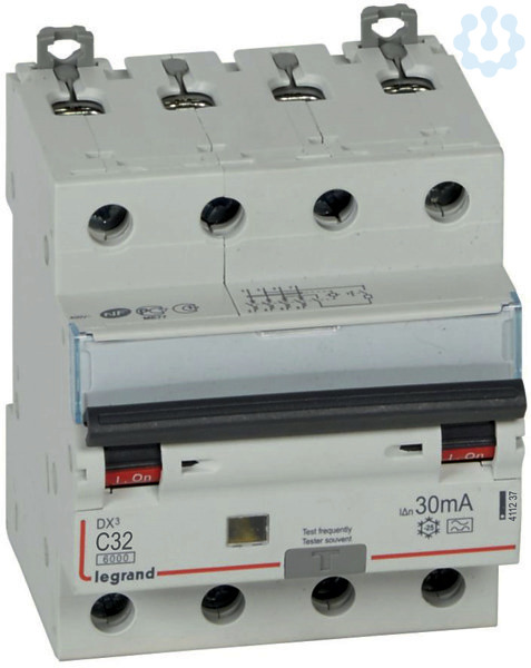 Legrand FI/LS-Schalter DX3, 4-polig, Typ A, für Wechsel- und pulsierende Gleichfehlerströme nach EN 61009-1, VDE 0664-20, unverzögert, Bemessungsstrom In 32 A, Bemessungsfehlerstrom Idn 30 mA.C-Charakteristik, Bemessungsspannung Un 400 VAC , Bemessungsfrequenz 50 Hz, Bemessungsschaltvermögen Icn 6 kA, Stoßstromfest bis 250 A, Energiebegrenzungsklasse 3, Auslöseanzeige: gelb=Fehlerstrom-oder Prüftastenauslösung, farblos= Kurzschluss-oder Handauslösung. Befestigung auf Hutprofilschiene EN 60715 durch rastende Schnellbefestigungen, klare Information vorne auf jedem Gerät, eindeutige Schaltstellungsanzeige rot/grün am Schalthebel (verriegelbar), mit Beschriftungsfenster, mit Untersteckschutz zum sicheren Einführen des Leiters in Fahrstuhlklemme, Anbau von Hilfsgeräten möglich.