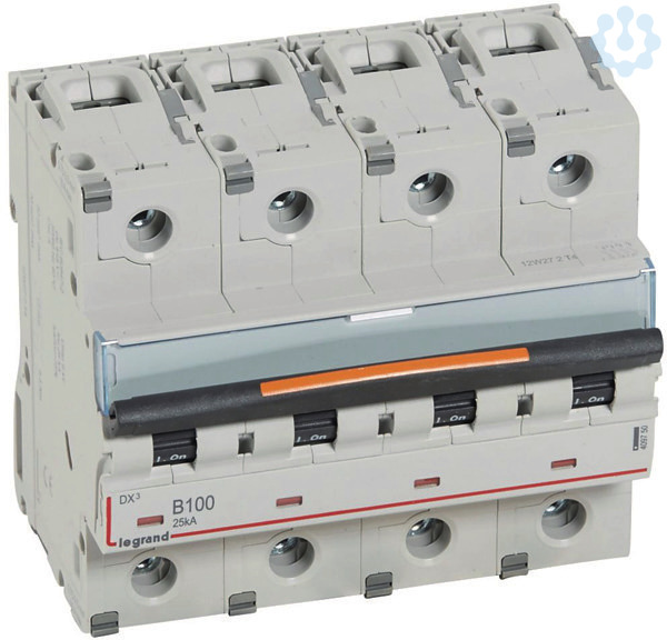 Legrand Leitungsschutzschalter DX3 nach EN 60947-2, 4-polig, B-Charakteristik, Bemessungsstrom In 100 A, Bemessungsschaltvermögen 25 kA nach EN 60947-2, Bemessungsspannung Un 400 VAC, Bemessungsfrequenz 50/60 Hz, Befestigung auf Hutprofilschiene EN 60715 durch zwei rastende Schnellbefestigungen, klare Information vorne auf jedem Gerät, eindeutige Schaltstellungsanzeige rot/grün, mit Beschriftungsfenster, mit Untersteckschutz zum sicheren Einführen des Leiters in Fahrstuhlklemme, Anbau von Hilfsgeräten möglich. Leitungsschutzschalter mit B-Charakteristik sind vornehmlich für den Leitungsschutz in Licht- und Steckdosen-Stromkreisen bestimmt.