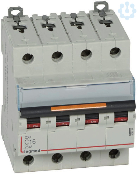 Legrand Leitungsschutzschalter DX3 nach EN 60947-2, 4-polig, C-Charakteristik, Bemessungsstrom In 16 A, Bemessungsschaltvermögen 25 kA nach EN 60947-2, Bemessungsspannung Un 400 VAC, Bemessungsfrequenz 50/60 Hz, Befestigung auf Hutprofilschiene EN 60715 durch zwei rastende Schnellbefestigungen, klare Information vorne auf jedem Gerät, eindeutige Schaltstellungsanzeige rot/grün, mit Beschriftungsfenster, mit Untersteckschutz zum sicheren Einführen des Leiters in Fahrstuhlklemme, Anbau von Hilfsgeräten möglich. Leitungsschutzschalter mit C-Charakteristik sind für den Leitungsschutz bei Geräten mit hohen Einschaltströmen (z.B. Motoren und Transformatoren) vorgesehen.