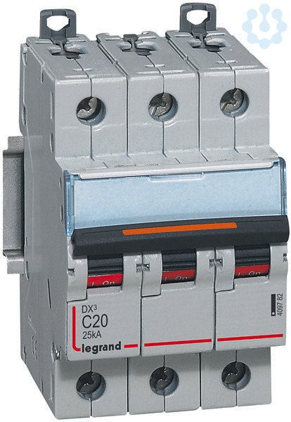 Legrand Leitungsschutzschalter DX3 nach EN 60947-2, 3-polig, C-Charakteristik, Bemessungsstrom In 20 A, Bemessungsschaltvermögen 25 kA nach EN 60947-2, Bemessungsspannung Un 400 VAC, Bemessungsfrequenz 50/60 Hz, Befestigung auf Hutprofilschiene EN 60715 durch zwei rastende Schnellbefestigungen, klare Information vorne auf jedem Gerät, eindeutige Schaltstellungsanzeige rot/grün, mit Beschriftungsfenster, mit Untersteckschutz zum sicheren Einführen des Leiters in Fahrstuhlklemme, Anbau von Hilfsgeräten möglich. Leitungsschutzschalter mit C-Charakteristik sind für den Leitungsschutz bei Geräten mit hohen Einschaltströmen (z.B. Motoren und Transformatoren) vorgesehen.