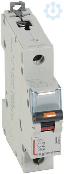 Legrand Leitungsschutzschalter DX3 nach EN 60947-2, 1-polig, C-Charakteristik, Bemessungsstrom In 2 A, Bemessungsschaltvermögen 25 kA nach EN 60947-2, Bemessungsspannung Un 230/400 VAC, Bemessungsfrequenz 50/60 Hz, Befestigung auf Hutprofilschiene EN 60715 durch zwei rastende Schnellbefestigungen, klare Information vorne auf jedem Gerät, eindeutige Schaltstellungsanzeige rot/grün, mit Beschriftungsfenster, mit Untersteckschutz zum sicheren Einführen des Leiters in Fahrstuhlklemme, Anbau von Hilfsgeräten möglich. Leitungsschutzschalter mit C-Charakteristik sind für den Leitungsschutz bei Geräten mit hohen Einschaltströmen (z.B. Motoren und Transformatoren) vorgesehen.