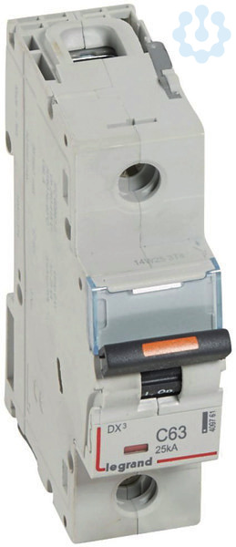 Legrand Leitungsschutzschalter DX3 nach EN 60947-2, 1-polig, C-Charakteristik, Bemessungsstrom In 63 A, Bemessungsschaltvermögen 25 kA nach EN 60947-2, Bemessungsspannung Un 230/400 VAC, Bemessungsfrequenz 50/60 Hz, Befestigung auf Hutprofilschiene EN 60715 durch zwei rastende Schnellbefestigungen, klare Information vorne auf jedem Gerät, eindeutige Schaltstellungsanzeige rot/grün, mit Beschriftungsfenster, mit Untersteckschutz zum sicheren Einführen des Leiters in Fahrstuhlklemme, Anbau von Hilfsgeräten möglich. Leitungsschutzschalter mit C-Charakteristik sind für den Leitungsschutz bei Geräten mit hohen Einschaltströmen (z.B. Motoren und Transformatoren) vorgesehen.