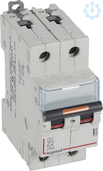 Legrand Leitungsschutzschalter DX3 nach EN 60947-2, 2-polig, Z-Charakteristik, Bemessungsstrom In 2 A, Bemessungsschaltvermögen 25 kA nach EN 60947-2, Bemessungsspannung Un 400 VAC, Bemessungsfrequenz 50/60 Hz, Befestigung auf Hutprofilschiene EN 60715 durch zwei rastende Schnellbefestigungen, klare Information vorne auf jedem Gerät, eindeutige Schaltstellungsanzeige rot/grün, mit Beschriftungsfenster, mit Untersteckschutz zum sicheren Einführen des Leiters in Fahrstuhlklemme, Anbau von Hilfsgeräten möglich. Leitungsschutzschalter mit Z-Charakteristik sind für den Leitungsschutz von z.B. Steuerstromkreisen elektronischer Schaltkreisen vorzusehen.