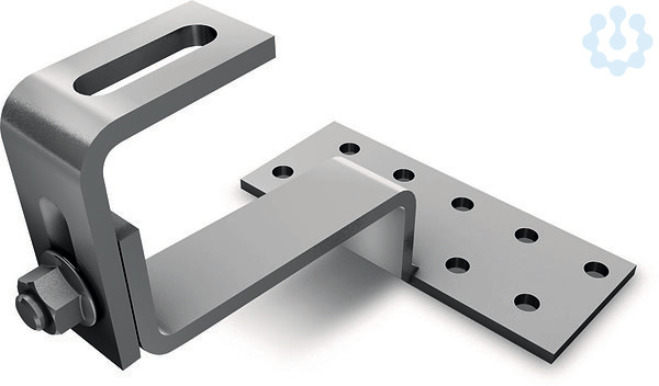 1-fach höhenverstellbarer Dachhaken SolidHook Vario 1. Zum Befestigen der K2 Systembauteile auf Dächern mit Pfannenziegeln. Bügel mit Langloch zur SolidRail Montage mit Hammerkopfschraube und Mutter M10. Abmessungen: Grundplatte: 150x60x5 mm, Höhe unter Ausleger: 43 mm, Höhe Ausleger: 55-90 mm, Ausleger: 30x6 mm, Gesamthöhe: ca. 112-145 mm Material: Edelstahl (1.4016)