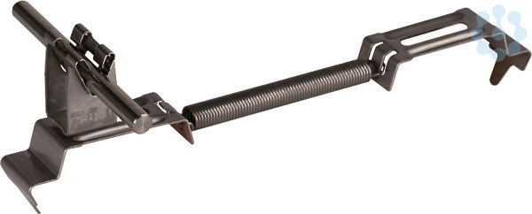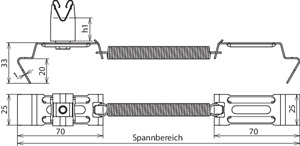 Dachleitungshalter SPANNgrip zum Befestigen von Fangleitungen auf dem Firstziegel z. B. bei Ziegeldächer. Mit Befestigung durch NIRO-Zugfeder mit Leitungshalter DEHNgrip, lose Leitungsführung, seitlich verstellbar.