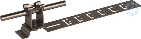 Dachleitungshalter UNIgrip mit geprägter Strebe zur Befestigung von Fang- und Ableitungen für Dachflächen. Ausführung mit vorgeformten Biegestellen zum Abwinkeln und Einhängen in den Dachziegel / Dachstein oder in die Dachlattung, mit Leitungshalter DEHNgrip Bauhöhe 20 mm, lose Leitungsführung.