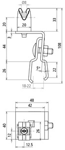 Dachleitungshalter Al f. Rd 8mm f. Blechdach m. Rechteckstehfalz
