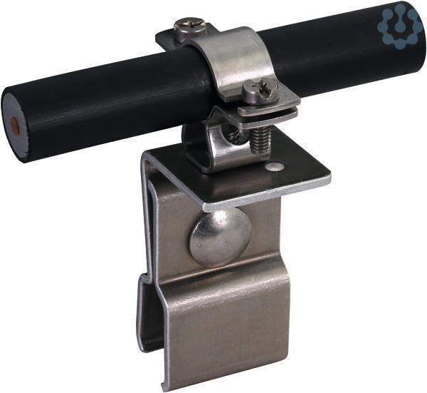 Dachleitungshalter mit Zweischraubenüberleger aus NIRO zum Verlegung der HVI Leitung auf Metalldächern mit Klemmfalz.