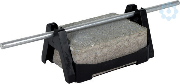 Dachleitungshalter mit zweifacher Leitungshalterung Typ FB2, zur Befestigung von Rundleitern mit loser Leitungsführung auf Flachdächern. Ausführung zweiteilig aus Leitungshalter mit Grundplatte aus wetterbeständigem Kunststoff, UV-stabilisiert und halogenfrei, mitaufgerastetem Stein aus frostbeständigem Beton. Stein und Unterteil getrennt recycelbar.
