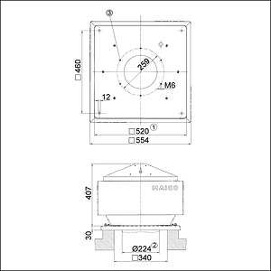 Druck- oder Volumenkonstanz einstellbar. 2 Drehzahlniveaus für Tag-/Nachtbetrieb. Tag-/Nachtbetrieb einstellbar über 2 Referenz-Volumenströme oder 2 Referenzdrücke. Mit automatischer Störmeldung. Für Zentralentlüftungsanlagen nach DIN 18017-3 einsetzbar. Einregulierung ohne Nachmessung von Druck oder Volumenstrom möglich. Gehäuse für Reinigungsarbeiten leicht abnehmbar. Verzinktes Schutzgitter auf der Ausblasseite, Berührungsschutz gemäß DIN EN ISO 13857. Stabile Transportösen ermöglichen einen Transport per Kran. Laufrad mit rückwärtsgekrümmten Schaufeln, dynamisch gewuchtet in 2 Ebenen, gemäß Gütestufe 6.3, DIN ISO 1940. Laufrad aus glasfaserverstärktem Polypropylen. Mit Reparaturschalter. Schutzart IP 45. Regelung: Regelung im Lieferumfang enthalten. Montage beliebig innerhalb des Gebäudes. Drucksensor im Ventilatorgehäuse betriebsbereit eingebaut. Regelung zum Betrieb in Konstantdruck- / Konstantvolumenstrom-Modus. Zur korrekten Funktion der Regelung ist ein Mindestvolumenstrom erforderlich: GRD 22 - 150 m3/h, GRD 25 - 200 m3/h, GRD 31 - 250 m3/h, Motor: EC-Motor. Überlastungsschutz serienmäßig. Keine Maßnahmen zum Motorschutz notwendig. Elektrischer Anschluss: 2 separate Netzanschlüsse (230 V, 50 Hz) für Ventilator und Regelung notwendig. Netzanschlüsse jeweils 3 x 1,5 mm2 vom Typ NYM-J / NYM-O. 6-adrige geschirmte Steuerleitung zwischen Regelung und Ventilator. Steuerleitung maximal 200 m lang, Außendurchmesser maximal 6 mm, z.B. LiYCY (6 x 0,25 mm2 oder 6 x 0,34 mm2).Artikel: GRD 22, Fördervolumen: 1970 m3/h, FördervolumenNenn: 950 m3/h / im opt. Wirkungsgrad, Druck pfs, Nenn: 370 Pa - im opt. Wirkungsgrad, Drehzahl nNenn: 1810 1/min - im opt. Wirkungsgrad, Drehzahl: 1883 1/min, Laufradtyp: radial, Drehzahlsteuerbar: ja, Reversierbarkeit: nein, Bemessungsspannung: 230 V, Netzfrequenz: 50 Hz, Nennleistung: 280 W / im opt. Wirkungsgrad, INenn: 1,7 A / im opt. Wirkungsgrad, IMax: 1,9 A, Schutzart: IP 45, Wärmeklasse: B, Netzzuleitung: 3 / 1,5 mm2, Einbauort: Dach, Einbaulage: senkrecht, Material: Stahlblech, verzinkt, Gewicht: 27,31 kg, Gewicht mit Verpackung: 30,08 kg, Klappe: integriert, Klappenart: selbstt. öffnend/schließend, Nennweite: 224 mm, Breite: 554 mm, Höhe: 554 mm, Tiefe: 437 mm, Breite mit Verpackung: 585 mm, Höhe mit Verpackung: 585 mm, Tiefe mit Verpackung: 470 mm, Fördermitteltemperatur bei Nennstrom: -20 °C bis 50 °C, Fördermitteltemperatur bei IMax: -20 °C bis 50 °C, Gesamteffizienz e: 46,7 %, Messkategorie: C, Effizienzkategorie: statisch, Effizienzgrad N: 62,4, VSD erforderlich: VSD integriert, Herstellungsjahr: siehe Typenschild, Herstellername / Amtliche Registriernummer / Niederlassungsort des Herstellers: Maico Elektroapparate-Fabrik GmbH / Registergericht Freiburg, HRB 601233, PBEP / FördervolumenBEP / Pfs, BEP: 0,32 kW / 1370 m3/h / 350 Pa, nBEP: 1790 1/min, spezifisches Verhältnis: ca. 1, Informationen zur Zerlegung und Entsorgung: siehe Montageanleitung, Informationen zu Einbau, Betrieb und Instandhaltung: siehe Montageanleitung, Verwendete Gegenstände bei der Effizienz-Messung, die nicht durch die Messkategorie beschrieben sind: Ermittlung der Energieeffizienz ohne Gehäuse. SchallleistungspegelLWA5: 75 dB(A)
