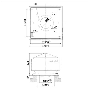 Druck- oder Volumenkonstanz einstellbar. 2 Drehzahlniveaus für Tag-/Nachtbetrieb. Tag-/Nachtbetrieb einstellbar über 2 Referenz-Volumenströme oder 2 Referenzdrücke. Mit automatischer Störmeldung. Für Zentralentlüftungsanlagen nach DIN 18017-3 einsetzbar. Einregulierung ohne Nachmessung von Druck oder Volumenstrom möglich. Gehäuse für Reinigungsarbeiten leicht abnehmbar. Verzinktes Schutzgitter auf der Ausblasseite, Berührungsschutz gemäß DIN EN ISO 13857. Stabile Transportösen ermöglichen einen Transport per Kran. Laufrad mit rückwärtsgekrümmten Schaufeln, dynamisch gewuchtet in 2 Ebenen, gemäß Gütestufe 6.3, DIN ISO 1940. Laufrad aus glasfaserverstärktem Polypropylen. Mit Reparaturschalter. Schutzart IP 45. Regelung: Regelung im Lieferumfang enthalten. Montage beliebig innerhalb des Gebäudes. Drucksensor im Ventilatorgehäuse betriebsbereit eingebaut. Regelung zum Betrieb in Konstantdruck- / Konstantvolumenstrom-Modus. Zur korrekten Funktion der Regelung ist ein Mindestvolumenstrom erforderlich: GRD 22 - 150 m3/h, GRD 25 - 200 m3/h, GRD 31 - 250 m3/h, Motor: EC-Motor. Überlastungsschutz serienmäßig. Keine Maßnahmen zum Motorschutz notwendig. Elektrischer Anschluss: 2 separate Netzanschlüsse (230 V, 50 Hz) für Ventilator und Regelung notwendig. Netzanschlüsse jeweils 3 x 1,5 mm2 vom Typ NYM-J / NYM-O. 6-adrige geschirmte Steuerleitung zwischen Regelung und Ventilator. Steuerleitung maximal 200 m lang, Außendurchmesser maximal 6 mm, z.B. LiYCY (6 x 0,25 mm2 oder 6 x 0,34 mm2).Artikel: GRD 25, Fördervolumen: 2690 m3/h, FördervolumenNenn: 1370 m3/h / im opt. Wirkungsgrad, Druck pfs, Nenn: 390 Pa - im opt. Wirkungsgrad, Drehzahl nNenn: 1660 1/min - im opt. Wirkungsgrad, Drehzahl: 1828 1/min, Laufradtyp: radial, Drehzahlsteuerbar: ja, Reversierbarkeit: nein, Bemessungsspannung: 230 V, Netzfrequenz: 50 Hz, Nennleistung: 410 W / im opt. Wirkungsgrad, INenn: 2,5 A / im opt. Wirkungsgrad, IMax: 2,6 A, Schutzart: IP 45, Wärmeklasse: B, Netzzuleitung: 3 / 1,5 mm2, Einbauort: Dach, Einbaulage: senkrecht, Material: Stahlblech, verzinkt, Gewicht: 30,71 kg, Gewicht mit Verpackung: 33,6 kg, Klappe: integriert, Klappenart: selbstt. öffnend/schließend, Nennweite: 250 mm, Breite: 614 mm, Höhe: 614 mm, Tiefe: 471 mm, Breite mit Verpackung: 640 mm, Höhe mit Verpackung: 640 mm, Tiefe mit Verpackung: 500 mm, Fördermitteltemperatur bei Nennstrom: -20 °C bis 50 °C, Fördermitteltemperatur bei IMax: -20 °C bis 50 °C, Gesamteffizienz e: 47,3 %, Messkategorie: C, Effizienzkategorie: statisch, Effizienzgrad N: 62,2, VSD erforderlich: VSD integriert, Herstellungsjahr: siehe Typenschild, Herstellername / Amtliche Registriernummer / Niederlassungsort des Herstellers: Maico Elektroapparate-Fabrik GmbH / Registergericht Freiburg, HRB 601233, PBEP / FördervolumenBEP / Pfs, BEP: 0,385 kW / 1780 m3/h / 330 Pa, nBEP: 1550 1/min, spezifisches Verhältnis: ca. 1, Informationen zur Zerlegung und Entsorgung: siehe Montageanleitung, Informationen zu Einbau, Betrieb und Instandhaltung: siehe Montageanleitung, Verwendete Gegenstände bei der Effizienz-Messung, die nicht durch die Messkategorie beschrieben sind: Ermittlung der Energieeffizienz ohne Gehäuse. SchallleistungspegelLWA5: 75 dB(A)