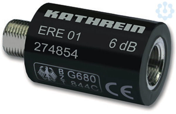 F-Daempfungsstecker, 6 dB, 0-2400 MHz, Fernspeisung typ. 24 V 1A, Schirmklasse A