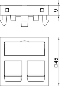 Datentechnikträger mit geradem Auslass und Verschlussschieber zur Aufnahme von zwei Datentechnik-Anschlussmodulen mit RJ45-Buchse. Die Rastbefestigung eignet sich für den waagerechten und senkrechten Einbau in die Systemumgebung. Typ EP hat eine spezielle Modulaufnahme und ist für eine indirekte Befestigung der Daten-Anschlussmodule in der Montageöffnung ausgelegt.