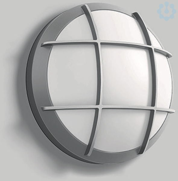 BEGA Decken- und Wandleuchte 24182AK3 mit Schutzgitter. LED, 27,2 W Leuchten-Anschlussleistung, Leuchten-Lichtstrom 2465 lm, Farbtemperatur 3000 K. Farbwiedergabeindex (CRI) > 80. Mit austauschbarem BEGA LED-Modul mit Übertemperaturschutz und einer Lebenserwartung von mindestens 50.000 Betriebsstunden. 20-jährige Nachliefergarantie auf das LED-Modul und die Verschleißteile. Mit LED-Netzteil, DALI-steuerbar, 220-240 V, 0/50-60 Hz. Schutzart IP 65. Ballwurfsicher. Leuchte aus Aluminiumguss, Aluminium und Edelstahl Beschichtungstechnologie BEGA Unidure® , Farbe Silber. Schlagfeste Kunststoffabdeckung. 2 Leitungsverschraubungen mit Zugentlastung zur Durchverdrahtung der Netzanschlussleitung von ø 7-12 mm. Anschlussklemme 2,5 qmm. Leuchtendurchmesser 350 mm, Höhe 110 mm.