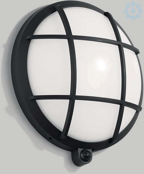 BEGA Wandleuchte 24186K4 mit eingebautem Passivinfrarot-Bewegungs- und Lichtsensor zur Integration in ein vorhandenes DALI-System. LED, 27,2 W Leuchten-Anschlussleistung, Leuchten-Lichtstrom 2592 lm, Farbtemperatur 4000 K. Farbwiedergabeindex (CRI) > 80. Mit austauschbarem BEGA LED-Modul mit Übertemperaturschutz und einer Lebenserwartung von mindestens 50.000 Betriebsstunden. 20-jährige Nachliefergarantie auf das LED-Modul und die Verschleißteile. Passivinfrarotbewegungssensor (PIR), Reichweite bis zu 10 m, Öffnungswinkel horizontal 110°, Öffnungswinkel vertikal 93°. Minimale Temperaturdifferenz zwischen bewegtem Objekt und Umgebung 4 °C. Objektgeschwindigkeit 1 m/s. Lichtsensor, Messbereich einstellbar über DALI-Cockpit 0-1020 lx, Auflösung 1 lx, Stromaufnahme: typ. 3,5 mA. Zeit-Hysterese zur Unterdrückung schneller Helligkeitsschwankungen. Mit LED-Netzteil, DALI steuerbar, 220-240 V, 0/50-60 Hz. Schutzart IP 65. Leuchte aus Aluminiumguss, Aluminium und Edelstahl Beschichtungstechnologie BEGA Unidure® , Farbe Grafit. Schlagfeste Kunststoffabdeckung. 2 Leitungsverschraubungen mit Zugentlastung zur Durchverdrahtung der Netzanschlussleitung von ø 7-12 mm. Anschlussklemme 2,5 qmm. Leuchtendurchmesser 350 mm, Höhe 110 mm.