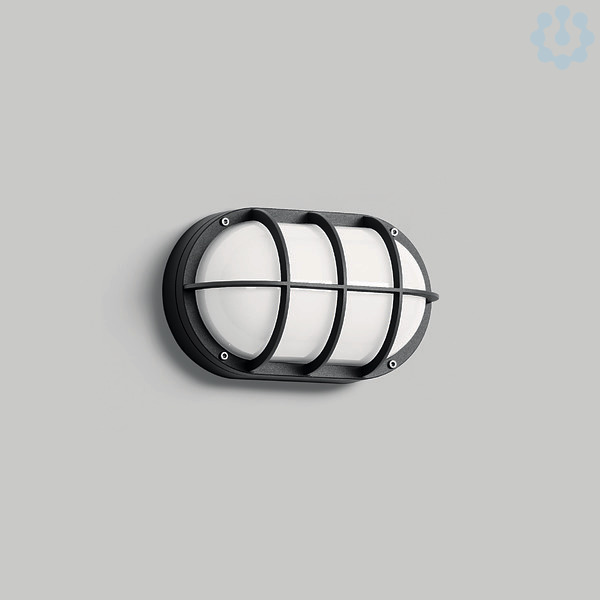 BEGA Decken- und Wandleuchte 22875 mit Schutzgitter. Für 1 Lampe mit einer Leistung von max. 75 W, Sockel E 27. inklusive BEGA LED-Leuchtmittel 13590, 12 W, 1400 lm, Farbtemperatur 3000 K. Schutzart IP 65. Leuchte aus Aluminiumguss, Aluminium und Edelstahl Beschichtungstechnologie BEGA Unidure® , Farbe Grafit. Kristallglas mit optischer Struktur. Zwei Leitungseinführungen zur Durchverdrahtung der Netzanschlussleitung bis Ø 10,5 mm. Abmessungen: 300 x 180 x 140 mm.