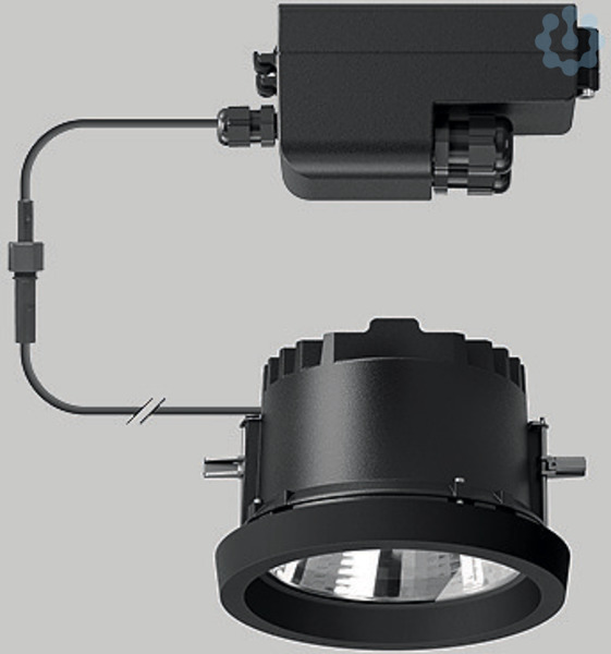 BEGA Deckeneinbau-Tiefstrahler 24261K4. Asymmetrische Lichtstärkeverteilung. LED, 13,2 W Leuchten-Anschlussleistung, Leuchten-Lichtstrom 1122 lm, Halbstreuwinkel 63/64°, Farbtemperatur 4000 K. Farbwiedergabeindex (CRI) > 80. Mit austauschbarem BEGA LED-Modul mit Übertemperaturschutz und einer Lebenserwartung von mindestens 50.000 Betriebsstunden. 20-jährige Nachliefergarantie auf das LED-Modul und die Verschleißteile. Mit LED-Netzteil, DALI steuerbar, 220-240 V, 0/50-60 Hz im externen Gehäuse. Schutzart IP 65, Schutzklasse II. Leuchte aus Aluminiumguss, Aluminium und Edelstahl. Abschlussring aus Aluminiumguss, Farbe Grafit. Sicherheitsglas mattiert. Optische Silikonlinse. Reflektoroberfläche aus eloxiertem Reinstaluminium. 2 Leitungsverschraubungen mit Zugentlastung zur Durchverdrahtung der Netzanschlussleitung von ø 4-10 mm, max. 5 x 1,5 qmm. 0,7 m Verbindungsleitung zwischen Leuchte und Netzteil. Abmessungen Ø 145 x 90 mm. Leuchte für den Einbau in eine Einbauöffnung mit den Abmessungen Ø 128 x 100 mm oder in das Einbaugehäuse 10441.