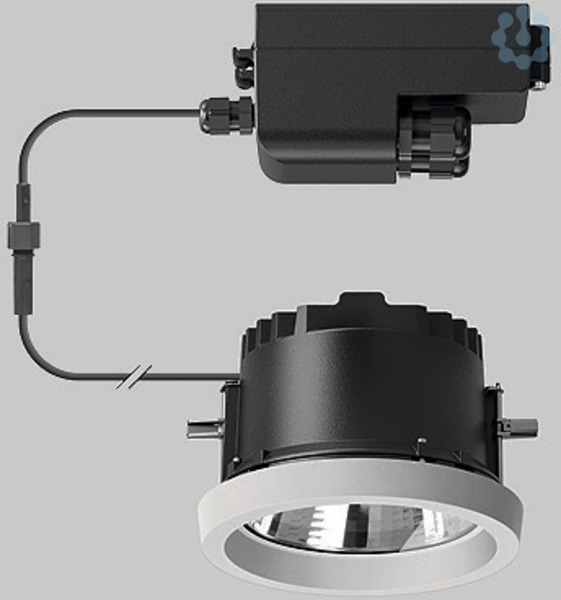 BEGA Deckeneinbau-Tiefstrahler 24261WK4. Asymmetrische Lichtstärkeverteilung. LED, 13,2 W Leuchten-Anschlussleistung, Leuchten-Lichtstrom 1122 lm, Halbstreuwinkel 63/64°, Farbtemperatur 4000 K. Farbwiedergabeindex (CRI) > 80. Mit austauschbarem BEGA LED-Modul mit Übertemperaturschutz und einer Lebenserwartung von mindestens 50.000 Betriebsstunden. 20-jährige Nachliefergarantie auf das LED-Modul und die Verschleißteile. Mit LED-Netzteil, DALI steuerbar, 220-240 V, 0/50-60 Hz im externen Gehäuse. Schutzart IP 65, Schutzklasse II. Leuchte aus Aluminiumguss, Aluminium und Edelstahl. Abschlussring aus Aluminiumguss, Farbe Weiß. Sicherheitsglas mattiert. Optische Silikonlinse. Reflektoroberfläche aus eloxiertem Reinstaluminium. 2 Leitungsverschraubungen mit Zugentlastung zur Durchverdrahtung der Netzanschlussleitung von ø 4-10 mm, max. 5 x 1,5 qmm. 0,7 m Verbindungsleitung zwischen Leuchte und Netzteil. Abmessungen Ø 145 x 90 mm. Leuchte für den Einbau in eine Einbauöffnung mit den Abmessungen Ø 128 x 100 mm oder in das Einbaugehäuse 10441.