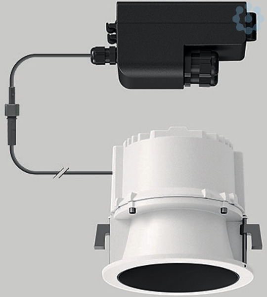BEGA Deckeneinbau-Tiefstrahler 24722WK4. BEGA Ultradark Optics® : Fokussiert-streuende Lichtstärkeverteilung mit minimalem Streulichtanteil. Raster und Blendring-Innenflächen mit maximal lichtabsorbierender ultraschwarzer Nanobeschichtung. LED, 21,5 W Leuchten-Anschlussleistung, Leuchten-Lichtstrom 1980 lm, Halbstreuwinkel 22°, Farbtemperatur 4000 K. Farbwiedergabeindex (CRI) > 80. Mit austauschbarem BEGA LED-Modul mit Übertemperaturschutz und einer Lebenserwartung von mindestens 50.000 Betriebsstunden. 20-jährige Nachliefergarantie auf das LED-Modul und die Verschleißteile. Mit LED-Netzteil, DALI-steuerbar, 220-240 V, 0/50-60 Hz im externen Gehäuse. Schutzart IP 65, Schutzklasse II. Leuchte aus Aluminiumguss, Aluminium und Edelstahl Beschichtungstechnologie BEGA Unidure® . Flacher Abschlussring aus Aluminiumguss, Farbe Weiß. Kunststoffabdeckung transluzent. Innenliegendes Raster und Polymerlinse. 2 Leitungsverschraubungen mit Zugentlastung zur Durchverdrahtung der Netzanschlussleitung von ø 4-10 mm, max. 5 x 1,5 qmm. 0,6 m Verbindungsleitung zwischen Leuchte und Netzteil. Abmessungen Ø 175 x 150 mm. Leuchte für den Einbau in eine Einbauöffnung mit den Abmessungen Ø 160 x 150 mm oder in das Einbaugehäuse 13 615.