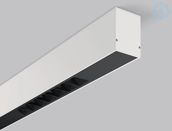 Lineare Decken- und Wandanbauleuchte für ästhetisch anspruchsvolle Beleuchtung. Leuchte mit 4 LED-Lichteinheiten. Gehäuse Aluminium-Strangpressprofil pulverbeschichtet. Endkappen Aluminium pulverbeschichtet. LED-Lichteinheit mit MRS-Technologie: Mini-Reflektor-System aus metallisiertem Thermoplast mit prismenförmigen schwarzen Entblendungsrahmen für angenehm blendfreies Licht (UGR < 10). 7 Reflektorelemente pro LED-Lichteinheit. Lichtverteilung mittelbreit-strahlend.. Austauschbare und herausnehmbare LED-Einheit mit integriertem Betriebsgerät. Für Durchgangsverdrahtung geeignet.