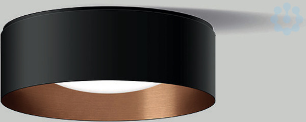 BEGA STUDIO LINE Deckenleuchte 51013.6K3 für den Innenbereich. Nach unten gerichtetes entblendetes Licht. LED, 29,4 W Leuchten-Anschlussleistung, Leuchten-Lichtstrom 2348 lm, Farbtemperatur 3000 K. Farbwiedergabeindex (CRI) > 90. Mit austauschbarem BEGA LED-Modul mit Übertemperaturschutz und einer Lebenserwartung von mindestens 50.000 Betriebsstunden. 20-jährige Nachliefergarantie auf das LED-Modul und die Verschleißteile. Mit LED-Netzteil, DALI-steuerbar, 220-240 V, 0/50-60 Hz. Leuchtengehäuse aus Aluminium. Oberfläche Farbe samtschwarz. Innenfarbton kupfer matt. Schlagfeste Kunststoffabdeckung, weiß mit Bajonettverschluss. Zwei Leitungseinführungen zur Durchverdrahtung der Netzanschlussleitung bis Ø 10,5 mm, max. 5 x 1,5 qmm. Leuchtendurchmesser 360 mm, Höhe 120 mm.