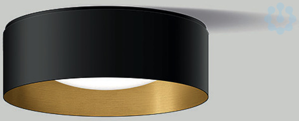 BEGA STUDIO LINE Deckenleuchte 51015.4K3 für den Innenbereich. Nach unten gerichtetes entblendetes Licht. Für 1 Lampe mit einer Leistung von max. 40 W, Sockel E 27. inklusive BEGA LED-Leuchtmittel 13592, 12 W, 1400 lm, Farbtemperatur 3000 K. Leuchtengehäuse aus Aluminium. Oberfläche Farbe samtschwarz. Innenfarbton messing matt. Schlagfeste Kunststoffabdeckung, weiß mit Bajonettverschluss. Zwei Leitungseinführungen zur Durchverdrahtung der Netzanschlussleitung bis Ø 10,5 mm. Leuchtendurchmesser 260 mm, Höhe 105 mm.