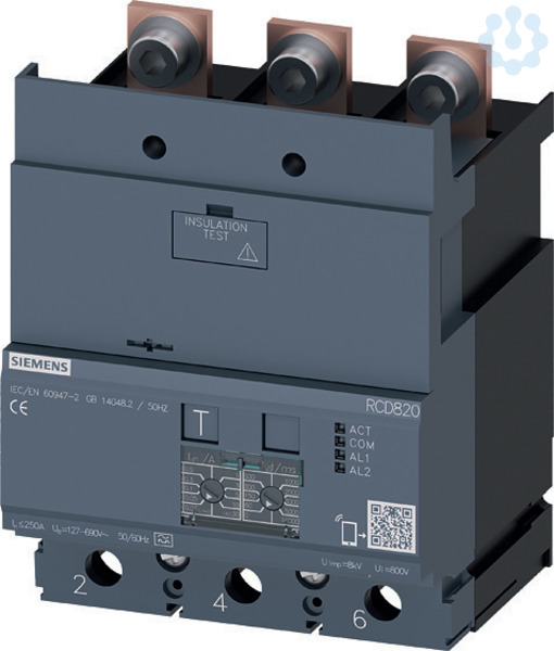Differenzstrom-Schutzgerät RCD820 advanced RCD Typ A unten angebaut Bemessungsfehlerstrom 0,03..30A bei 50/60Hz einstellbare tv 0...10000ms 3-polig In=250A Ue=100-690V Zubehör für: 3VA2 SENTRON Kompaktleistungsschalter 3VA - Ein System. Für alle Anwendungen.