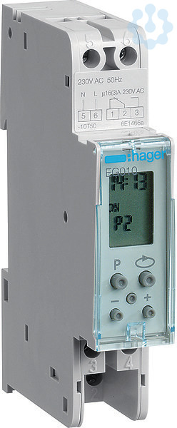 Tagesschaltuhr digital, 1 Kanal, vorprogrammiert 1W 16A. Tagesschaltuhr digital 1-Kanal zur Zeitsteuerung von Betriebsmitteln, Montage auf der Hutschiene, mit Zwangsschaltung Ein/Aus und Gangreserve.