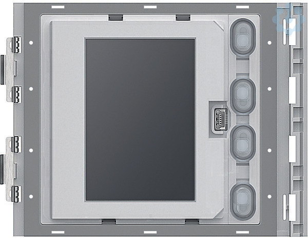 Modul mit Grafikdisplay. Modul mit Grafik-Display zum Speichern, Suchen und Abrufen von bis zu 4000 Namen. Das Grafi kdisplay muss direkt am Audio- Türlautsprecher Art. 351100 oder den Videolautsprechern Art. 351200–351300, mittels mitgelieferten Verbindungskabel, angeschlossen werden. Es stehen 2 Funktionsmodi zur Auswahl: – Suchen des Namens im Adressenverzeichnis und Absetzen des Rufs mittels der Tasten am Gerät. – Bei Verwendung der Tastatur Art. 353000 kann die SCS-Adresse (interne Adressierung der Hausstation) direkt angewählt werden. Es können mehrere Namen einer SCS-Adresse zugewiesen werden. Deren Programmierung kann auf 2 Arten erfolgen: – Durch die Eingabe von Hand über die Tasten des Moduls – Konfi guration über PC mittels der Software TiSferaDesign (empfohlene Methode) Mit entsprechender Frontblende zu vervollständigen.
