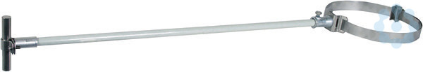Distanzhalter für Fangstangen zur Einhaltung des Trennungsabstandes nach DIN EN 62305-3 (VDE 0185-305-3). Distanzstab aus glasfaserverstärktem Kunststoff (GFK) D16 mm, UV-stabilisiert, Farbe lichtgrau, Materialfaktor km= 0,7. Ausführung mit Stangenhalter (feste Leitungsführung) und Bandrohrschelle (Klemmbereich D50-300 mm).