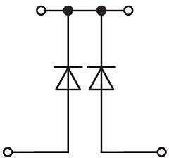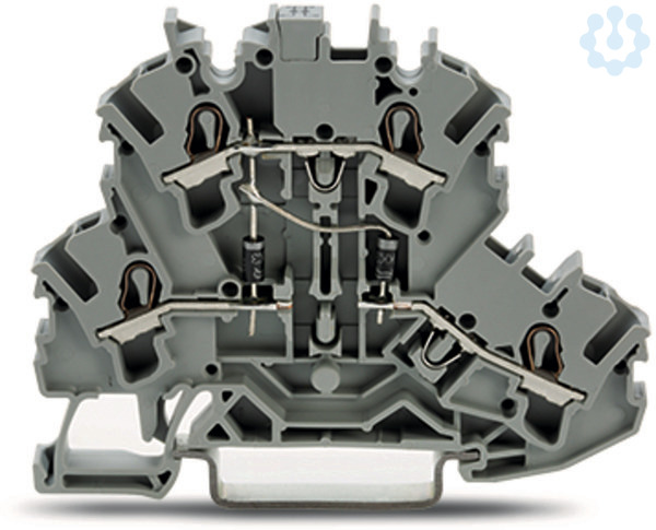 Bauelementklemme; Doppelstock; mit 2 Dioden 1N4007; Anoden unten; für Tragschiene 35 x 15 und 35 x 7,5; 2,5 mm²; Push-in CAGE CLAMP®; 2,50 mm²; grau