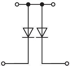 Bauelementklemme; Doppelstock; mit 2 Dioden 1N4007; Anoden oben; für Tragschiene 35 x 15 und 35 x 7,5; 2,5 mm²; Push-in CAGE CLAMP®; 2,50 mm²; grau