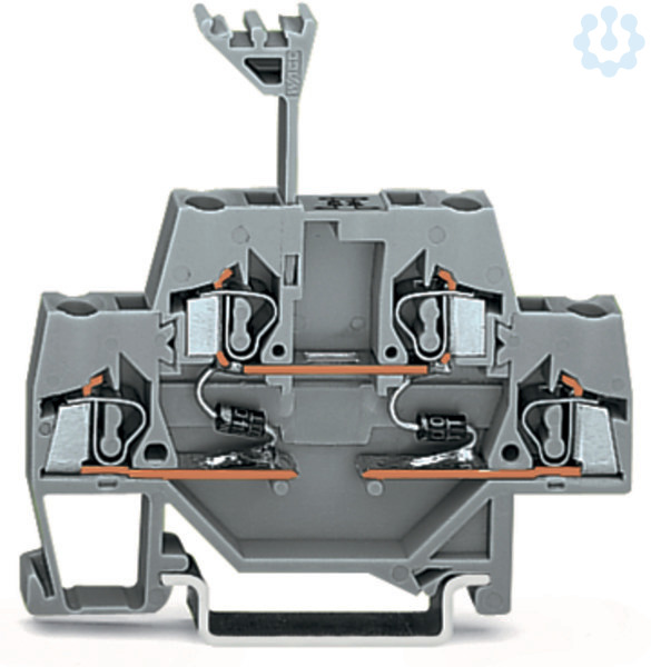 Bauelementklemme; Doppelstock; mit 2 Dioden 1N4007; Anoden unten; für Tragschiene 35 x 15 und 35 x 7,5; 2,5 mm²; CAGE CLAMP®; 2,50 mm²; grau