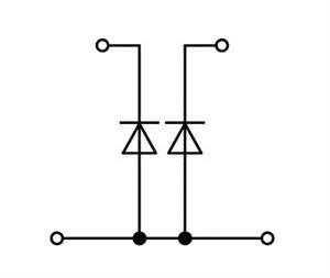 Bauelementklemme; Doppelstock; mit 2 Dioden 1N4007; Anoden unten; für Tragschiene 35 x 15 und 35 x 7,5; 4 mm²; CAGE CLAMP®; 4,00 mm²; grau