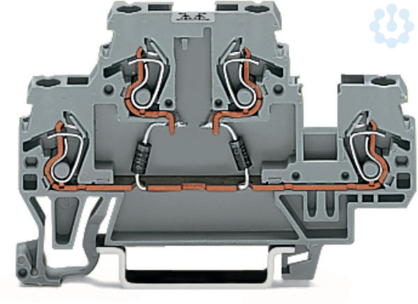 Bauelementklemme; Doppelstock; mit 2 Dioden 1N4007; Anoden unten; für Tragschiene 35 x 15 und 35 x 7,5; 2,5 mm²; CAGE CLAMP®; 2,50 mm²; grau