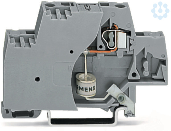 Bauelementklemme; Doppelstock; mit Abschlussplatte; mit Gasableiter; für Tragschiene 35 x 15 und 35 x 7,5; 2,5 mm²; CAGE CLAMP®; 2,50 mm²; grau