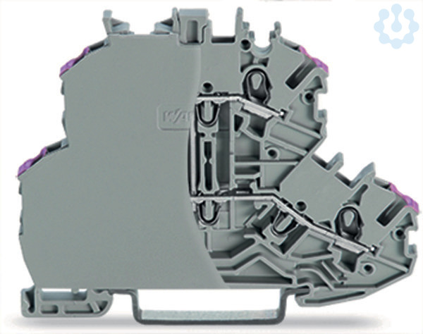 Doppelstockklemme; 4-Leiter-Durchgangsklemme; mit Abschlussplatte; L; ohne Beschriftungsträger; intern gebrückt; Leitereinführung violett bedruckt; für Tragschiene 35 x 15 und 35 x 7,5; 2,5 mm²; Push-in CAGE CLAMP®; 2,50 mm²; grau