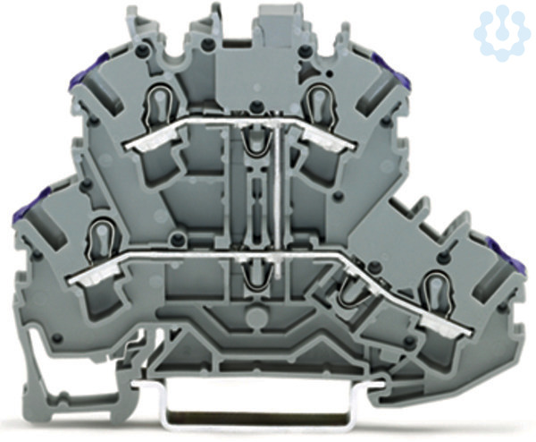Doppelstockklemme; 4-Leiter-Durchgangsklemme; L; ohne Beschriftungsträger; für Anwendungen Ex e II geeignet; intern gebrückt; Leitereinführung violett bedruckt; für Tragschiene 35 x 15 und 35 x 7,5; 2,5 mm²; Push-in CAGE CLAMP®; 2,50 mm²; grau