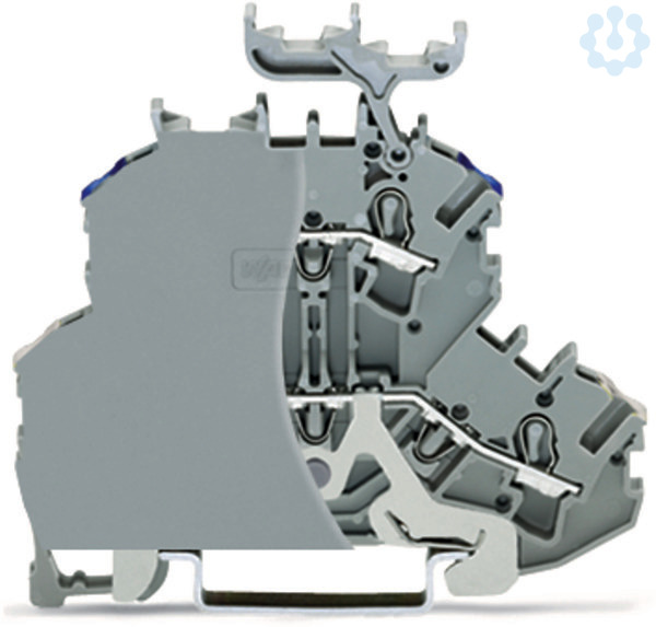 Doppelstockklemme; Schirmleiter-/Durchgangsklemme; mit Abschlussplatte; 2,5 mm²; Schirmung/N; mit Beschriftungsträger; für Tragschiene 35 x 15 und 35 x 7,5; Push-in CAGE CLAMP®; 2,50 mm²; grau