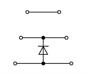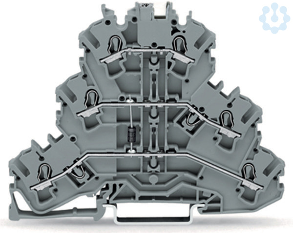 Bauelementklemme; Dreistock; mit Diode 1N4007; Anode unten; für Tragschiene 35 x 15 und 35 x 7,5; 2,5 mm²; Push-in CAGE CLAMP®; 2,50 mm²; grau