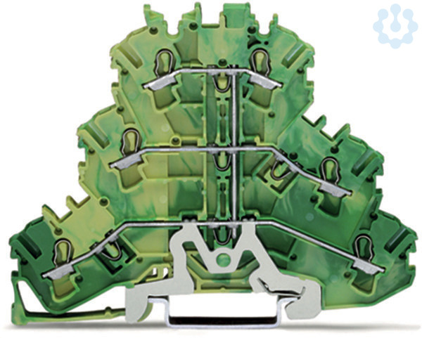 Dreistockklemme; 6-Leiter-Schutzleiterklemme; 2,5 mm²; PE; für Anwendungen Ex e II geeignet; ohne Beschriftungsträger; intern gebrückt; für Tragschiene 35 x 15 und 35 x 7,5; Push-in CAGE CLAMP®; 2,50 mm²; grün-gelb