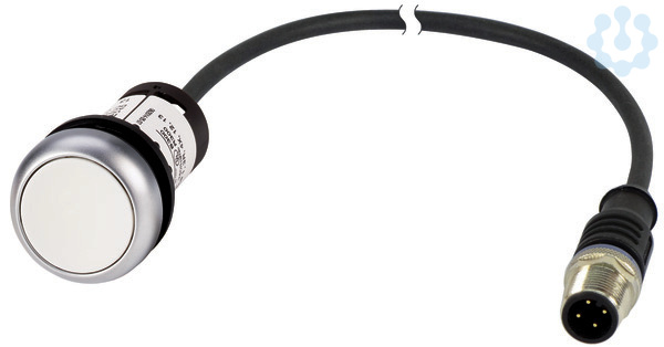 Drucktaste, RMQ compact solution, Komplettgerät, Bauform: flach, rastend, Anschlussart: Kabel (schwarz) mit M12A-Stecker, 4-polig, Kabellänge: 0.2 m, Tastenplatte: weiß, Tastenplatte unbeschriftet, Beschriftung: ohne, Schutzart: IP66, IP67, IP69K (frontseitig), IP65 (rückseitig), Frontring Titan, Anbindung an SmartWire-DT: nein, S = Schließer: 1 S, Normen und Bestimmungen: IEC/EN 60947-5-1, VDE 0660