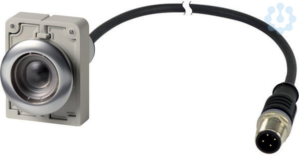 Drucktaste, RMQ compact solution, Komplettgerät, Bauform: flach, rastend, Anschlussart: Kabel (schwarz) mit M12A-Stecker, 4-polig, Kabellänge: 1 m, Tastenplatte: ohne Tastenplatte, Schutzart: IP66, IP67, IP69K (frontseitig), IP65 (rückseitig), Frontring Metall, Anbindung an SmartWire-DT: nein, S = Schließer: 1 S, Normen und Bestimmungen: IEC/EN 60947-5-1, VDE 0660