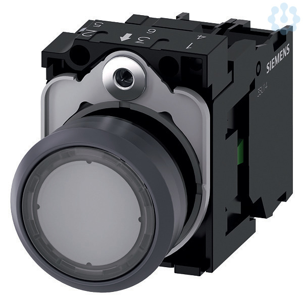 Leuchtdrucktaster, 22 mm, rund, Kunststoff mit Metallfrontring, klar, Druckknopf, flach, tastend, mit Halter, 1S, LED-Modul mit integrierter LED AC 230 V, Schraubanschluss Leuchtdrucktaster SIRIUS ACT zur Schaltung und Steuerung elektrischer Verbraucher.Unter dem Markennamen SIRIUS ACT bietet Siemens ein einzigartiges Portfolio an Befehls- und Meldegeräten mit weltweiten Produkt-Zulassungen in vier modernen Designreihen aus robustem Echtmetall und hochwertigem Kunststoff.Das innovative Aufschnappkonzept vereinfacht die Montage so weit, dass dafür nur eine Hand und kein Spezialwerkzeug erforderlich ist. Als Montagebohrungen genügen nutfreie Löcher, da bereits ein 100%iger Verdrehschutz integriert ist.Dank der durchgängig hohen Schutzart sind die robusten Geräte industrietauglich und für den Außeneinsatz geeignet. Sogar die Reinigung mit Hochdruckstrahl ist möglich. Weder Staub, Öle noch aggressive Laugen können den zuverlässigen Betrieb stören.Neben der Standardverdrahtung können die Geräte auch über PROFINET, AS-Interface oder IO-Link an die Steuerung angebunden werden. Damit reduzieren Sie Ihren Verdrahtungsaufwand, minimieren Fehlerquellen und gewinnen mehr Flexibilität.Komfortabel unterstützt der grafische Online-Konfigurator bei Auswahl und Bestellung von Einzelgeräten, Gehäusen und Beschriftungen. Umfangreiche Dokumentation (z.B. Handbuch, 3D-Daten, Anschlussdiagramm) ist verfügbar.Lieferbare Ausführungen: mehrere Farben, beleuchtet/unbeleuchtet, mit/ohne Beschriftung, verrastende/tastende Betätigung, verschiedene Druckknopf- und Frontringhöhen.Hinweis: Komplettgerät, Lieferung inklusive Halter und Module.SIRIUS ACT - Performance in Action beim Befehlen und Melden. Einfach montiert, einfach stark, einfach perfekt.