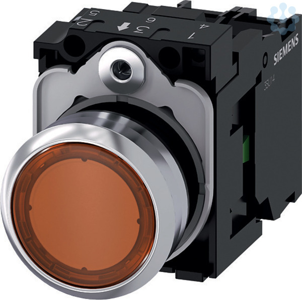 Leuchtdrucktaster, 22 mm, rund, Metall, hochglanz, amber, Druckknopf, flach, tastend, mit Halter, 1S, LED-Modul mit integrierter LED AC 230 V, Schraubanschluss Leuchtdrucktaster SIRIUS ACT zur Schaltung und Steuerung elektrischer Verbraucher.Unter dem Markennamen SIRIUS ACT bietet Siemens ein einzigartiges Portfolio an Befehls- und Meldegeräten mit weltweiten Produkt-Zulassungen in drei modernen Designreihen aus robustem Echtmetall und hochwertigem Kunststoff.Das innovative Aufschnappkonzept vereinfacht die Montage so weit, dass dafür nur eine Hand und kein Spezialwerkzeug erforderlich ist. Als Montagebohrungen genügen nutfreie Löcher, da bereits ein 100%igerVerdrehschutz integriert ist.Dank der durchgängig hohen Schutzart sind die robusten Geräte industrietauglich und für den Außeneinsatz geeignet. Sogar die Reinigung mit Hochdruckstrahl ist möglich. Weder Staub, Öle noch aggressive Laugen können den zuverlässigen Betrieb stören.Neben der Standardverdrahtung können die meisten Geräte auch über PROFINET, AS-Interface oder IO-Link an die Steuerung angebunden werden. Damit reduzieren Sie Ihren Verdrahtungsaufwand, minimieren Fehlerquellen und gewinnen mehr Flexibilität.Komfortabel unterstützt der grafische Online-Konfigurator bei Auswahl und Bestellung von Einzelgeräten, Gehäusen und Beschriftungen. Umfangreiche Dokumentation (z.B. Handbuch, 3D-Daten, Anschlussdiagramm) ist verfügbar.Lieferbare Ausführungen: mehrere Farben, beleuchtet/unbeleuchtet, mit/ohne Beschriftung, verrastende/tastende Betätigung, verschiedene Druckknopf- und Frontringhöhen.Hinweis: Komplettgerät, Lieferung inklusive Halter und Module.SIRIUS ACT - Performance in Action beim Befehlen und Melden. Einfach montiert, einfach stark, einfach perfekt.