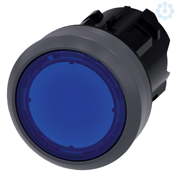 Leuchtdrucktaster, 22 mm, rund, Kunststoff mit Metallfrontring, blau, Druckknopf, flach tastend Leuchtdrucktaster SIRIUS ACT zur Schaltung und Steuerung elektrischer Verbraucher.Unter dem Markennamen SIRIUS ACT bietet Siemens ein einzigartiges Portfolio an Befehls- und Meldegeräten mit weltweiten Produkt-Zulassungen in vier modernen Designreihen aus robustem Echtmetall und hochwertigem Kunststoff.Das innovative Aufschnappkonzept vereinfacht die Montage so weit, dass dafür nur eine Hand und kein Spezialwerkzeug erforderlich ist. Als Montagebohrungen genügen nutfreie Löcher, da bereits ein 100%iger Verdrehschutz integriert ist.Dank der durchgängig hohen Schutzart sind die robusten Geräte industrietauglich und für den Außeneinsatz geeignet. Sogar die Reinigung mit Hochdruckstrahl ist möglich. Weder Staub, Öle noch aggressive Laugen können den zuverlässigen Betrieb stören.Neben der Standardverdrahtung können die Geräte auch über PROFINET, AS-Interface oder IO-Link an die Steuerung angebunden werden. Damit reduzieren Sie Ihren Verdrahtungsaufwand, minimieren Fehlerquellen und gewinnen mehr Flexibilität.Komfortabel unterstützt der grafische Online-Konfigurator bei Auswahl und Bestellung von Einzelgeräten, Gehäusen und Beschriftungen. Umfangreiche Dokumentation (z.B. Handbuch, 3D-Daten, Anschlussdiagramm) ist verfügbar.Lieferbare Ausführungen: mehrere Farben, beleuchtet/unbeleuchtet, mit/ohne Beschriftung, verrastende/tastende Betätigung, verschiedene Druckknopf- und Frontringhöhen.Hinweis: Einzelgerät, Halter und Module bitte extra bestellen.SIRIUS ACT - Performance in Action beim Befehlen und Melden. Einfach montiert, einfach stark, einfach perfekt.