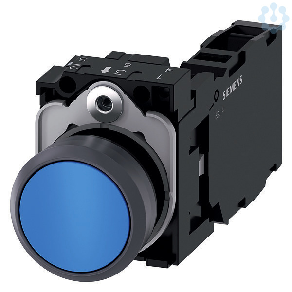 Drucktaster, 22 mm, rund, Kunststoff mit Metallfrontring, blau, Druckknopf, flach, tastend, mit Halter, 1S+1Ö, Schraubanschluss Drucktaster SIRIUS ACT zur Schaltung und Steuerung elektrischer Verbraucher.Unter dem Markennamen SIRIUS ACT bietet Siemens ein einzigartiges Portfolio an Befehls- und Meldegeräten mit weltweiten Produkt-Zulassungen in vier modernen Designreihen aus robustem Echtmetall und hochwertigem Kunststoff.Das innovative Aufschnappkonzept vereinfacht die Montage so weit, dass dafür nur eine Hand und kein Spezialwerkzeug erforderlich ist. Als Montagebohrungen genügen nutfreie Löcher, da bereits ein 100%iger Verdrehschutz integriert ist.Dank der durchgängig hohen Schutzart sind die robusten Geräte industrietauglich und für den Außeneinsatz geeignet. Sogar die Reinigung mit Hochdruckstrahl ist möglich. Weder Staub, Öle noch aggressive Laugen können den zuverlässigen Betrieb stören.Neben der Standardverdrahtung können die Geräte auch über PROFINET, AS-Interface oder IO-Link an die Steuerung angebunden werden. Damit reduzieren Sie Ihren Verdrahtungsaufwand, minimieren Fehlerquellen und gewinnen mehr Flexibilität.Komfortabel unterstützt der grafische Online-Konfigurator bei Auswahl und Bestellung von Einzelgeräten, Gehäusen und Beschriftungen. Umfangreiche Dokumentation (z.B. Handbuch, 3D-Daten, Anschlussdiagramm) ist verfügbar.Lieferbare Ausführungen: mehrere Farben, beleuchtet/unbeleuchtet, mit/ohne Beschriftung, verrastende/tastende Betätigung, verschiedene Druckknopf- und Frontringhöhen.Hinweis: Komplettgerät, Lieferung inklusive Halter und Module.SIRIUS ACT - Performance in Action beim Befehlen und Melden. Einfach montiert, einfach stark, einfach perfekt.