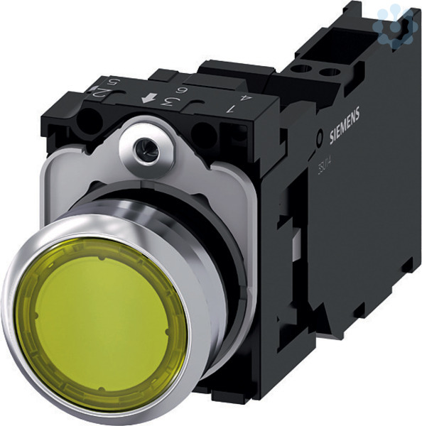 Leuchtdrucktaster, 22 mm, rund, Metall, hochglanz, gelb, Druckknopf, flach, tastend, mit Halter, 1S+1Ö, LED-Modul mit integrierter LED AC/DC 24V, Federzuganschluss Leuchtdrucktaster SIRIUS ACT zur Schaltung und Steuerung elektrischer Verbraucher.Unter dem Markennamen SIRIUS ACT bietet Siemens ein einzigartiges Portfolio an Befehls- und Meldegeräten mit weltweiten Produkt-Zulassungen in drei modernen Designreihen aus robustem Echtmetall und hochwertigem Kunststoff.Das innovative Aufschnappkonzept vereinfacht die Montage so weit, dass dafür nur eine Hand und kein Spezialwerkzeug erforderlich ist. Als Montagebohrungen genügen nutfreie Löcher, da bereits ein 100%igerVerdrehschutz integriert ist.Dank der durchgängig hohen Schutzart sind die robusten Geräte industrietauglich und für den Außeneinsatz geeignet. Sogar die Reinigung mit Hochdruckstrahl ist möglich. Weder Staub, Öle noch aggressive Laugen können den zuverlässigen Betrieb stören.Neben der Standardverdrahtung können die meisten Geräte auch über PROFINET, AS-Interface oder IO-Link an die Steuerung angebunden werden. Damit reduzieren Sie Ihren Verdrahtungsaufwand, minimieren Fehlerquellen und gewinnen mehr Flexibilität.Komfortabel unterstützt der grafische Online-Konfigurator bei Auswahl und Bestellung von Einzelgeräten, Gehäusen und Beschriftungen. Umfangreiche Dokumentation (z.B. Handbuch, 3D-Daten, Anschlussdiagramm) ist verfügbar.Lieferbare Ausführungen: mehrere Farben, beleuchtet/unbeleuchtet, mit/ohne Beschriftung, verrastende/tastende Betätigung, verschiedene Druckknopf- und Frontringhöhen.Hinweis: Komplettgerät, Lieferung inklusive Halter und Module.SIRIUS ACT - Performance in Action beim Befehlen und Melden. Einfach montiert, einfach stark, einfach perfekt.